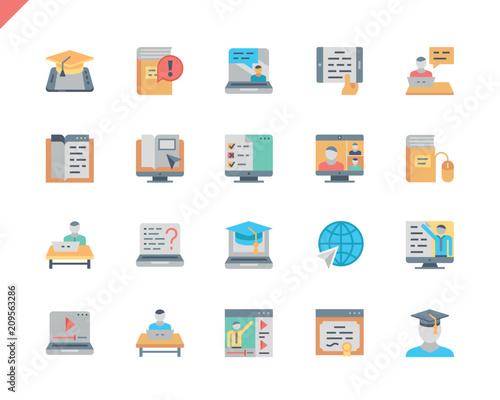 Simple Set Online Education Flat Icons for Website and Mobile Apps. Contains such Icons as Video Tutorial, E-book, Computer, Education Plan, Student. 48x48 Pixel Perfect. Vector illustration.