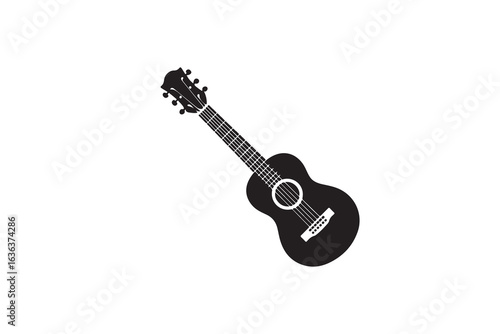 Simple Silhouette of an Acoustic Guitar.A clean, black silhouette of an acoustic guitar against a white background.