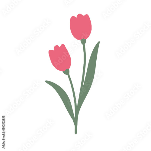 Simple Vector Illustration of Two Pink Tulip Flowers with Green Stems