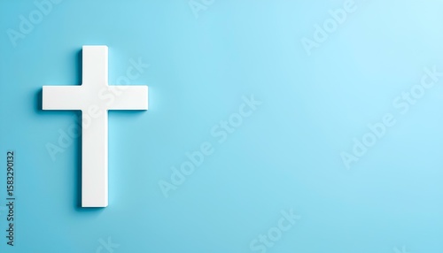 Simple white cross symbol placed on a bright blue background with copy space