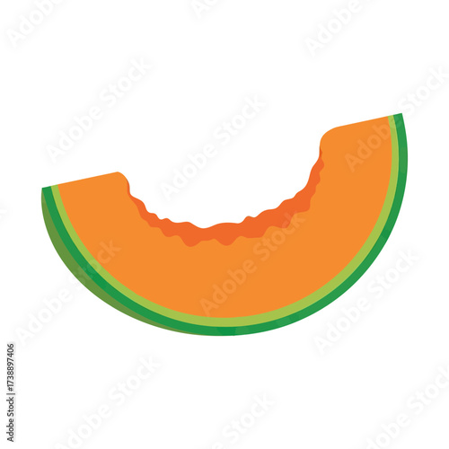 Simplified graphic depiction of a cantaloupe slice displaying vibrant color contrasts and textures