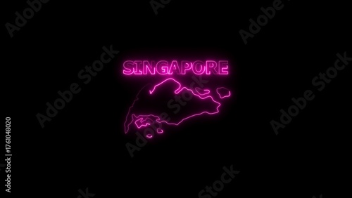 Singapore neon map outline and text in vibrant pink on black background image photo