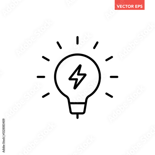Single black charging lightbulb line icon, simple smart tech light flat design illustration pictogram, infographic vector for app web banner button ui interface elements isolated on white background