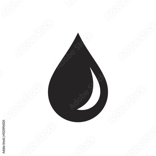 Single black water drop icon. Simple water droplet symbol design element. Minimalist water drop illustration perfect for funeral service announcements or pet loss sympathy cards.