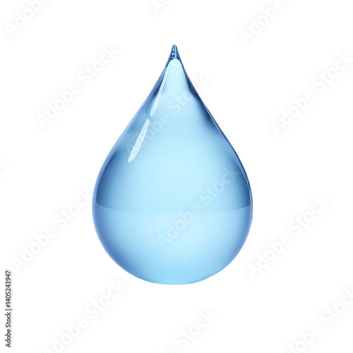 Single Blue Water Droplet on White Background