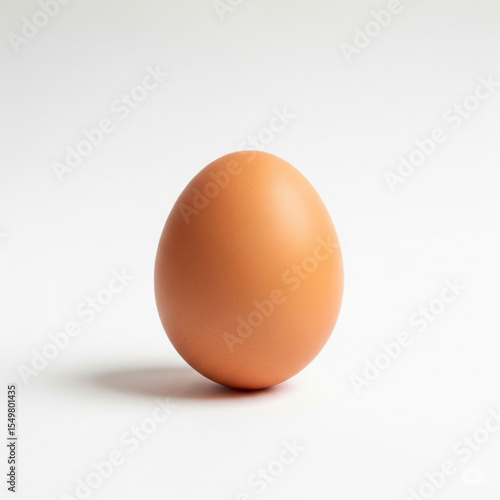 Single brown chicken egg with a smooth shell casting a subtle shadow isolated on white background