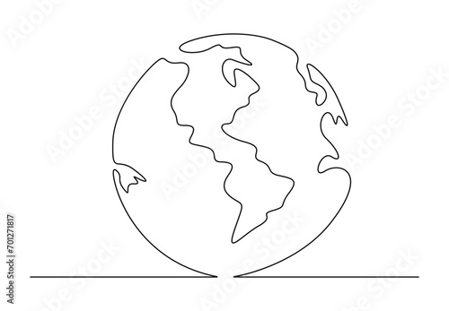 Single continuous line drawing of round globe earth. Earth icon silhouette for education concept. Vector illustration. Premium vector.