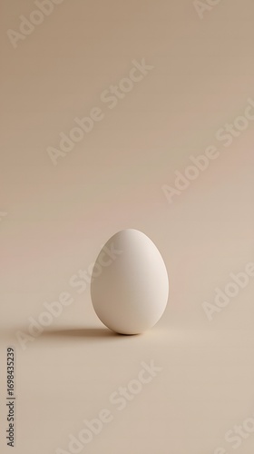 Single delicate white egg casting a subtle shadow on a soft neutral surface