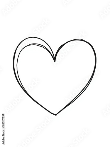 Single hand-drawn heart shape in a continuous black line, perfect for love cards or wedding icons, black ink, isolated