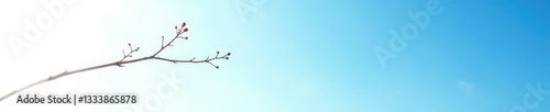 Single isolated branch against a bright blue sky on white background, nature, mist