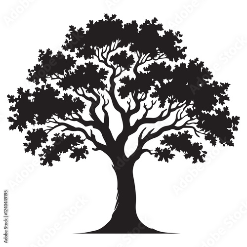 Single Large Oak Tree Silhouette Vector Illustration
