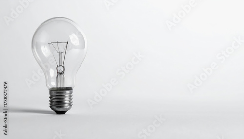 Single light bulb placed on a white background symbolizing business concepts with ample copy space for text ideas