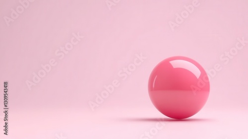Single pink sphere on a pink background. Minimalist and simple image with a soft, pastel color palette. The sphere is shiny and reflects light.