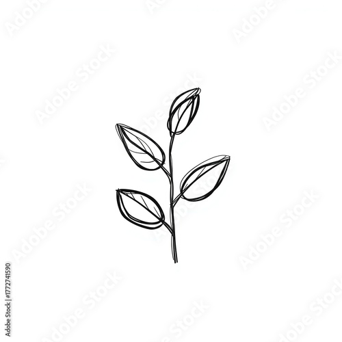 Single plant vector line art on copy space white background/ tree isolated on white background