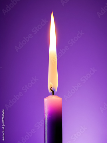 Single purple candle flame, violet pink background, Tenebrae service , religious, service
