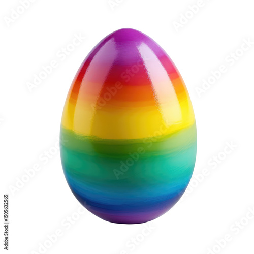 Single rainbow-colored Easter egg with smooth glossy texture on transparent background