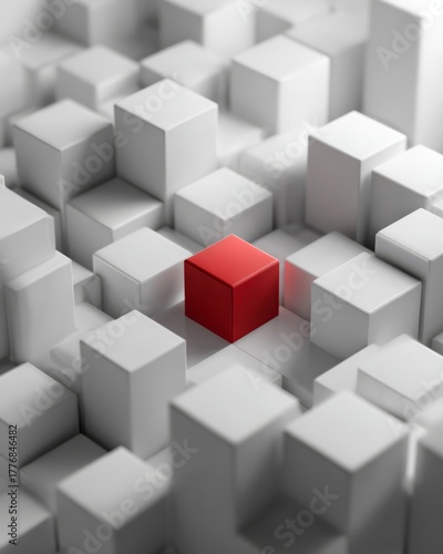 Single red cube among white cubes, representing individuality, courage, and creative difference.
