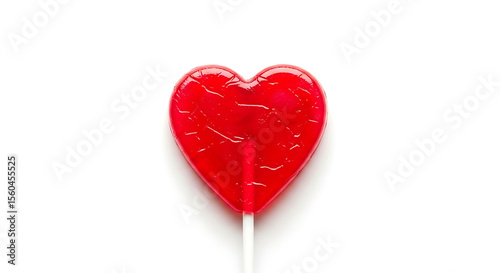 Single Red Heart Lollipop on White Background
