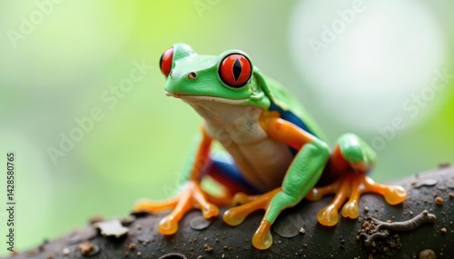 Single red-eyed tree frog on stark white, bright eyes, eyes, stock photo, macro