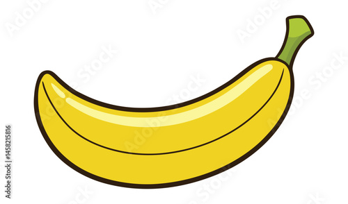 Single ripe yellow banana cartoon illustration