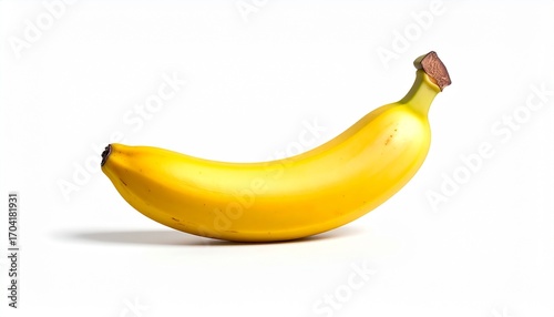 Single ripe yellow banana on a clean white background fresh and healthy fruit studio shot.