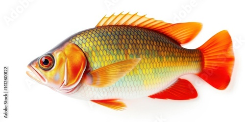 Single vibrant fish isolated on pure white backdrop, graphic, element