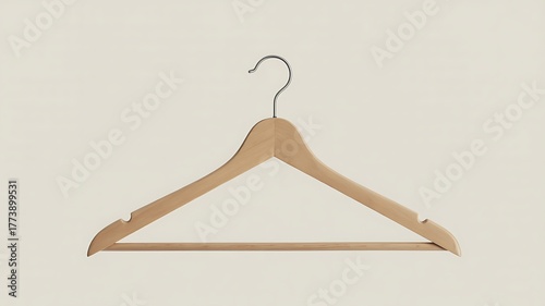 Single Wooden Clothes Hanger on White Background – Minimalist Household and Wardrobe Organization Concept