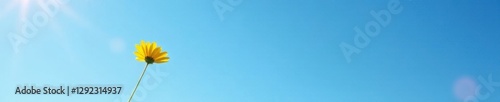 Single yellow wildflower set against a vast blue sky , spring, natural