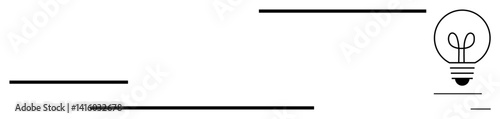 Single-line style light bulb symbolizes creativity amidst dynamic straight lines. Ideal for innovation, progress, simplicity, efficiency, ideas, inspiration, technology. Flat simple metaphor