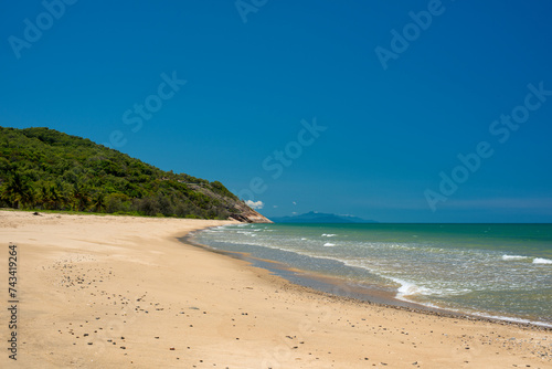 Sink your toes into the golden sands of Wangetti Beach, Far North Queensland, where crystal-clear waters meet pristine coastline.