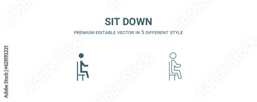 sit down icon. Filled and line sit down icon from people collection. Outline vector isolated on white background. Editable sit down symbol