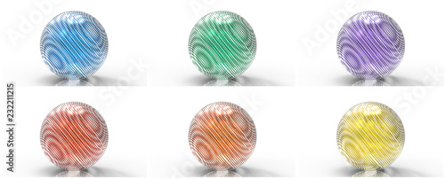 Six icons set. Geometric pattern ball. 3d rendering.