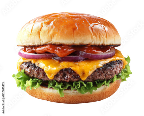 Sizzling burger delight kitchen food culinary isolated on transparent background