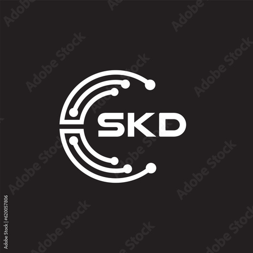 SKD letter technology logo design on black background. SKD creative initials letter IT logo concept. SKD setting shape design.
