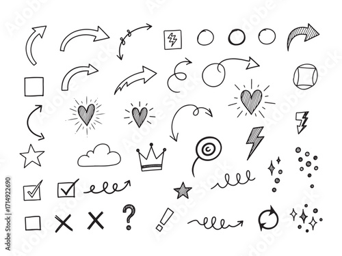 Sketchbook of Hand Drawn Doodles Assortment of Arrows Hearts Stars Circles Checkmarks and other Symbols for Creative Projects
