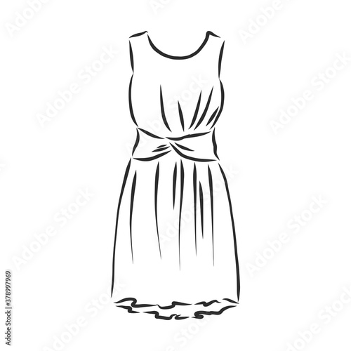 Sketches collection of women's dresses. Hand drawn vector illustration. Black outline drawing isolated on white background women's dress, vector sketch illustration