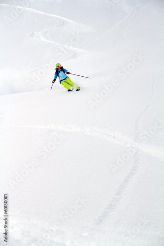 Skier in deep powder, extreme freeride
