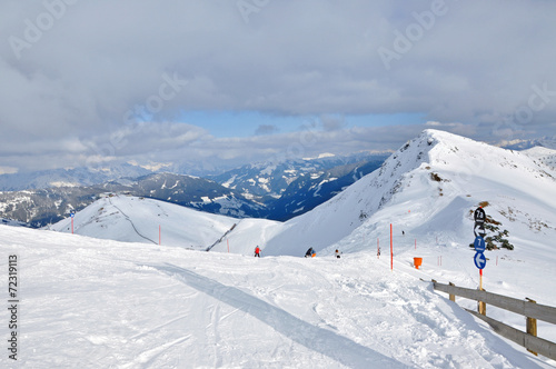 Skiers skiing on the piste