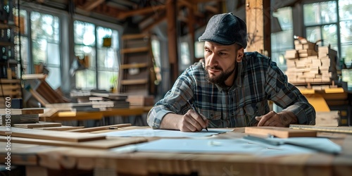 Skilled Carpenter Meticulously Designs Ergonomic Wooden Office Furniture in His Workshop Showcasing Craftsmanship and Attention to Detail