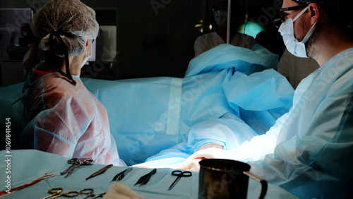 Skilled surgical team using advanced technology to perform precise surgery in a hospital operating room, highlighting teamwork and dedication for successful recovery