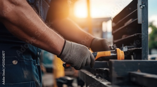 Skilled Technician Working with Hand Tools During Sunset Glow