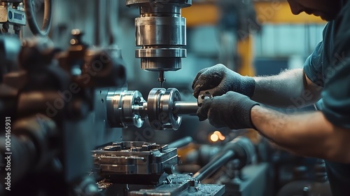Skilled Worker Operating Lathe Machine to Shape Precision Metal Part in Industrial Workshop