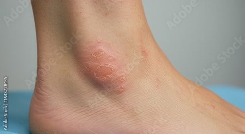 Skin condition on ankle with psoriasis lesions in neutral setting