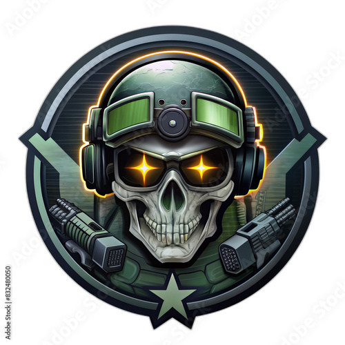skull wearing night vision tactical helmet, suitable for t shirt, badge, logo design