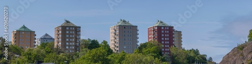 Skyscrapers on the cliff at the cliffs of Danviken, a sunny summer day in Stockholm