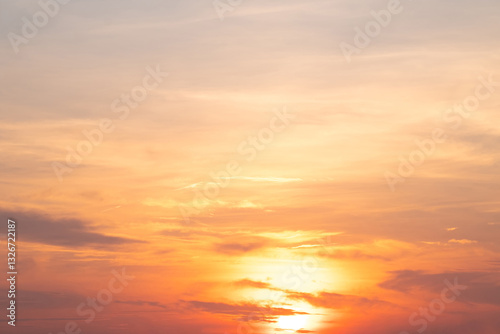 Sky,sunset, beautiful , luxury soft gradient orange gold clouds and sunlight on the blue sky perfect for the background, Sunrise on morning or everning in winter warm time ,Twilight summer,silhouette