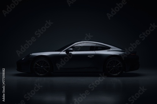 Sleek Automobile Profile in Dark Studio: Modern Car Design, Automotive Photography, and Transportation