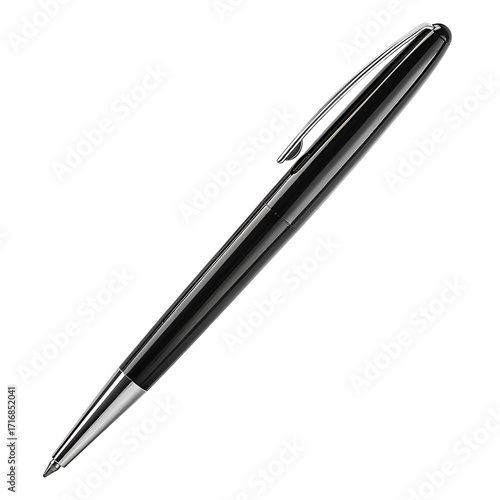 Sleek Black Ballpoint Pen with Silver Accents on Black