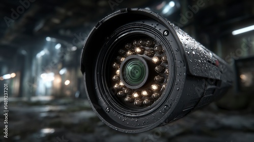 Sleek Black CCTV Camera Surveillance Security System Night Vision Detailed Closeup