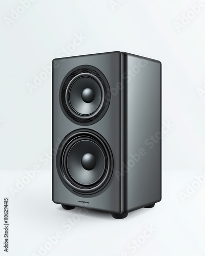 Sleek black dual-driver speaker on a light background, perfect for enhancing audio experiences in any setting.